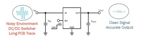 LDO輸出端的低頻譜噪聲密度(在10 Hz至1 Mhz之間)也有助于減少傳輸至CMOS圖像傳感器的噪聲量,使像素實現更大的動態范圍。最后,總體紋波和噪聲應至少低于傳感器的噪聲閾值40 dB,在數據手冊中通常表示為信噪比(SNR)。