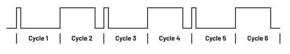 但是,除了提到的優點以外,該穩壓器也有缺點。在進行開關轉換之后,電流模式穩壓器無法立刻實施所需的電流測量,因為如果在此時進行測量,測量結果中會包含大量噪聲。需要等待幾nS,等開關引起的噪聲減弱。這段時間被稱為消隱時間。這通常導致其最短導通時間略長于電壓模式穩壓器的最短導通時間。電流模式穩壓器的另一個缺點是其可能產生次諧波振蕩。如圖3所示。如果所需的占空比大于50%,電流模式穩壓器可能交替執行短脈沖和長脈沖。在許多應用中,這被認為是不穩定的,需要加以避免。為了避免這種不穩定性,可以向圖1所示的生成的電流斜坡添加一定的斜坡補償。這樣可以將關鍵占空比閾值調節到遠高于50%,保證在更高占空比下,也不會發生次諧波振蕩。