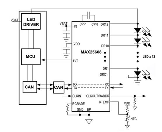 MAX25608可用于矩陣照明、自適應(yīng)駕駛,光束和動畫照明