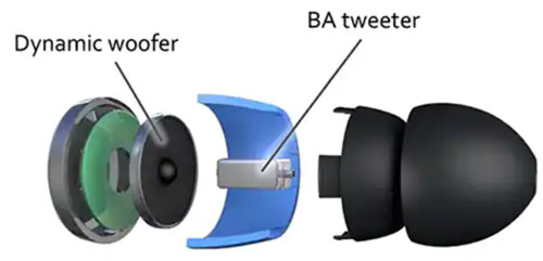 圖 5:將耳塞中的低音單元和高音單元分開,可以使高音單元朝向設備的前面,這有助于限制閉塞效應。(圖片來源:Knowles)