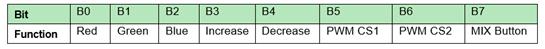 B5和B6 bit負責選擇PWM信號將通過的引腳(顏色):這些bit的顏色指定如表3所示。最后一個bit B7負責激活自動混合功能。