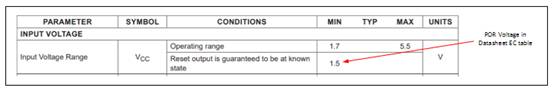 監控器IC需要一個稱為上電復位(VPOR)的最低電壓來生成明確或可靠的復位信號,而在此最低電源電壓到來之前,復位信號的狀態是不確定的。一般來說,將其稱之為復位毛刺。