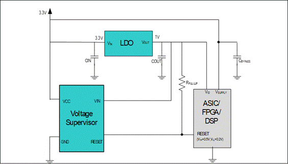 圖3、顯示了監控器與低供電電壓ASIC/FPGA/DSP的接口