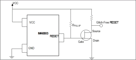 圖2、顯示了復位電壓如何與上拉電壓(VPULLUP)成比例上升,從而導致通常所說的復位毛刺。