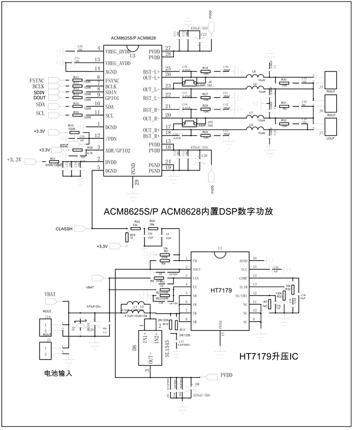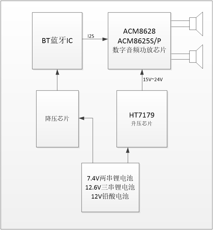 目前大功率藍牙音箱多以多串鋰電池及鉛酸電池作為供電電源,深圳市永阜康科技有限公司推出基于HT7179+ACM8628的單聲道80W/立體聲40W內置DSP數字功放+升壓IC藍牙音箱應用組合方案,無需外圍MOS管、升壓效率最高達94%,內置DSP數字功放IC可實現多種音效,例如小信號低音增強、高低音補償等,為消費者提供HI-FI級的音質體驗。