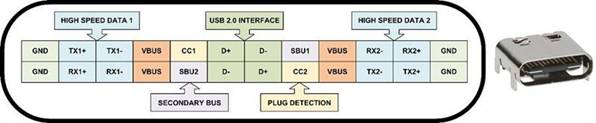 市場上推出的是USB Type-C,它以在將連接器插入USB端口時無論連接器的方向如何都能正常工作而聞名。但是,USB端口和連接并不像人們想象的那么簡單。在推出Type-C和USB 3.x及更進一步之前,Type-A和Type-B的USB連接器主要有4根線,VBUS,GND,D +和D-。顧名思義,這些用于為外設(VBUS,GND)供電,并在外設和主機(D+,D-)之間傳輸數據。C 型插座端口如圖 2 所示。