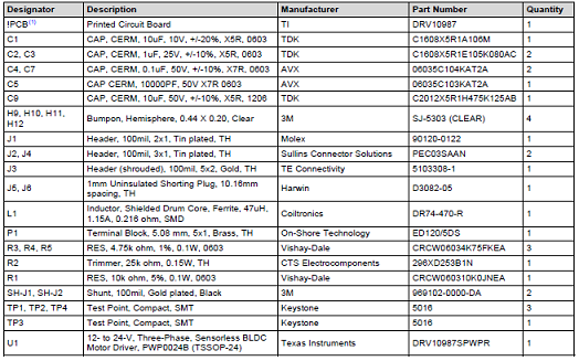 評估模塊DRV10987 EVM材料清單: