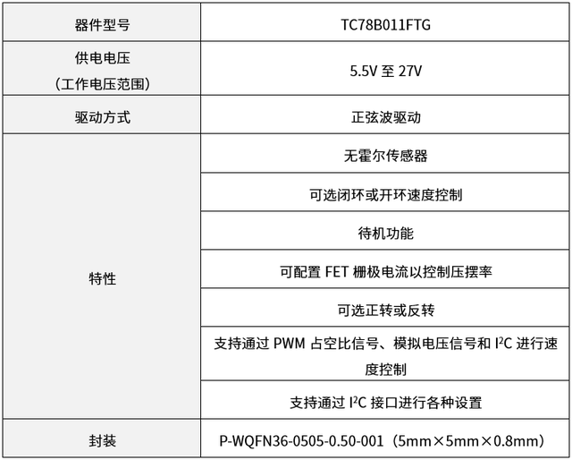 同時東芝還批量生產采用無霍爾傳感器控制的方波驅動方式的TC78B009FTG。用戶可以根據自己的電機驅動方式選擇合適的產品。
