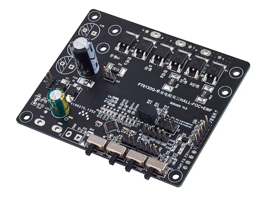 基于FT8132Q三相電機控制專用IC為開發者提供的測試板,設計了MOSFET驅動電路,各種電流電壓檢測電路,HALL輸入電路,以及各類功能接口電路。可實現三相電機的無感FOC驅動,有感FOC驅動,有感SVPWM驅動,支持恒轉速、恒電流、恒功率、電壓環控制模式,支持模擬電壓、PWM、I2C、CLOCK調節電機轉速,支持 HALL、BEMF 檢測,還可實現轉速的實時反饋和電機的控制,以及各類應用方案開發的前期預研;