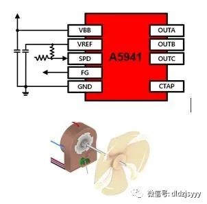 另外,A5941芯片還集成有EEPROM存儲單元(詳見下一期介紹),根據(jù)應(yīng)用需要,可以通過更改在EEPROM內(nèi)存儲的配置指令,定制電機(jī)的啟動。電機(jī)的轉(zhuǎn)速調(diào)節(jié)是通過控制PWM輸入信號的占空比來實(shí)現(xiàn),該P(yáng)WM信號的允許頻率范圍非常寬。根據(jù)需求,配置EEPROM也可以設(shè)定通過模擬電壓輸入來調(diào)節(jié)電機(jī)轉(zhuǎn)速。A5941芯片可以實(shí)現(xiàn)在無需外部霍爾傳感器的情況下,檢測三相電機(jī)轉(zhuǎn)子位置。這種技術(shù)的優(yōu)點(diǎn)不僅可以省去因霍爾傳感器的損壞而帶來的維護(hù)問題,提高風(fēng)扇電機(jī)的可靠性,擴(kuò)大應(yīng)用范圍,降低生產(chǎn)成本,而且也能消除因傳感器的不一致而產(chǎn)生的檢測誤差。A5941芯片采用了10引腳的SOIC封裝形式。