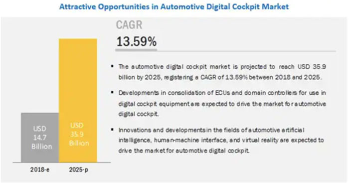圖1:汽車智能座艙市場增長前景廣闊 (圖源:MarketandMarket)
