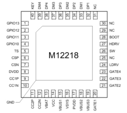 M12218(單節鋰電5A充放電管理移動電源22.5W雙向快充IC)