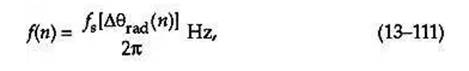 這是傳統的離散信號調頻解調方法,效果很好。解調器的瞬時輸出頻率為下面的 Eq13-111: