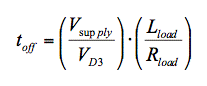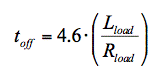 在二極管續流電路中,負載兩端的電壓僅增加二極管正向傳導電壓,因此電流衰減為e -t 的函數。如果關斷 電流定義為飽和電流的 1%,典型續流二極管的關斷時間可由下式計算: