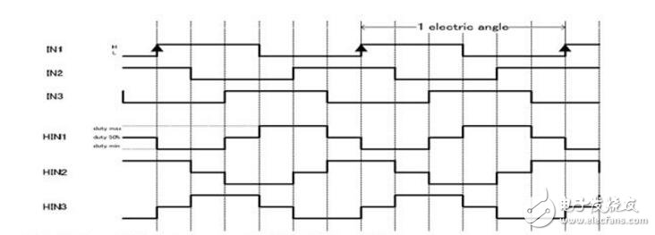 圖3:LC08000M 方波120°脈寬調制的PWM與霍爾關系的對應圖