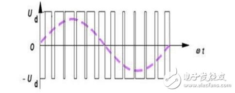 疊加在MOS管的直流電壓可以通過PWM開關控制來等效成正弦電壓,由于中性點為0,因此電機的相電壓也為正弦,從而使得電機相線電流也成正弦變化規則,消除了轉矩波動。根據面積等效原理,正弦波還可以等效成PWM波。