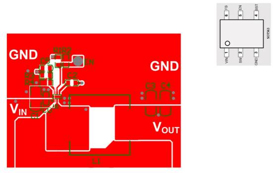同步BUCK的方式,續流路徑要經過芯片的GND管腳,輸入電容要接在芯片的GND和Vin之間,路徑竟可能的短粗。