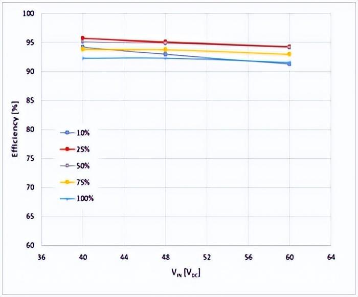 圖5:輸入電壓對能效和負(fù)載變化