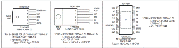實際輸出能力與壓差和電流有關,手冊中給表示的理想狀態。實際的輸出能力和壓差及電流相關。大的輸出電流值散熱問題越嚴重,如果是大電流的應用盡量使用開關電源。