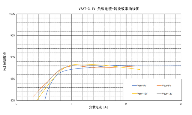 MERCHIP水芯電子的M12219巔峰效率極高。從負載電流—轉換效率曲線圖上來看,M12219的效率最高可達94.74%,高于友商芯片峰值7%左右。