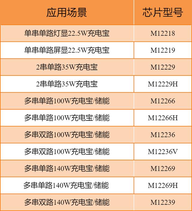 除了M12218和M12219這兩款明星產品外,MERCHIP水芯電子還推出了從22.5W-140W的完整快充充放電平臺。該系列芯片中的M12239等芯片可以支持兩路獨立快充,實現筆記本和手機同時快充,也可以多顆芯片并聯輕松實現多口快充充放電的復雜系統設計。