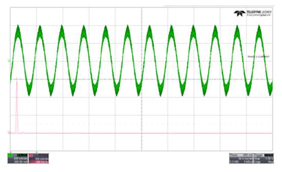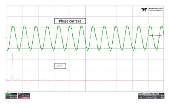 圖 4:相電流波形與 FFT 連續 PWM 之間的關系