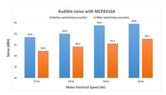 例如,TI 的 MCF8316A BLDC 集成控制柵極驅動器(一款無傳感器 FOC 電機驅動器)采用此內置功能來優化多種電機頻率下的聲學性能,如圖 6 所示。
