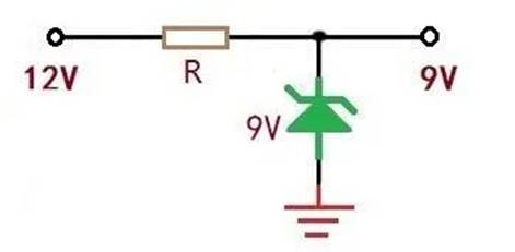 2、若負載電流很小100mA以內,可以使用限流電阻+9V穩壓管的方式實現,這種方法在實際應用中也很常見,原理如下圖所示。