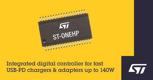 意法半導體推出了率先業界通過USB-IF的USB Power Delivery Extended Power Range (USB PD 3.1 EPR)規范認證的集成化數字控制器芯片ST-ONEHP。