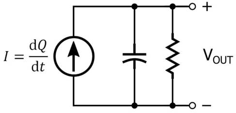 VOUT=1C∫dQdt dt=QCVOUT=1C∫dQdt dt=QC