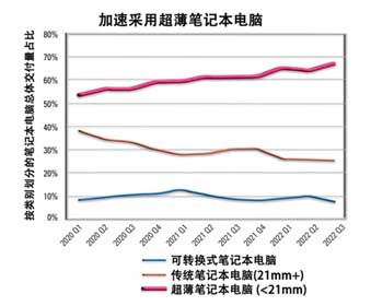 圖 1:根據 IDC 的數據,越來越多的用戶選擇超薄筆記本電腦,因為這些設備的厚度接近手機的厚度。