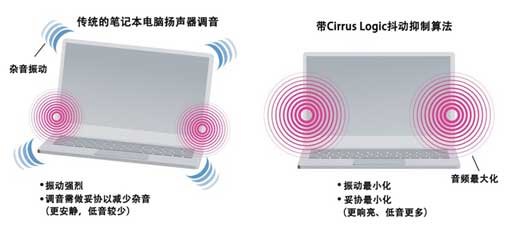 圖 5:Cirrus Logic 算法可減少超薄筆記本電腦的雜音并最大限度地減少振動,同時確保響亮、優質的音頻。