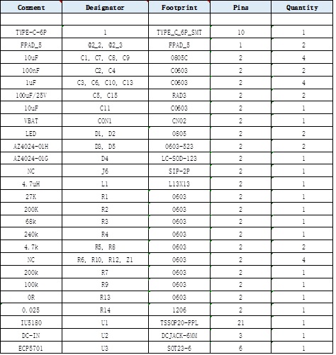 6.IU5180 +PD快充DEMO板物料清單