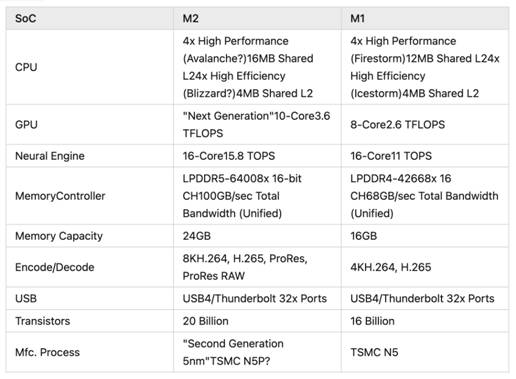 Apple M2 是 Apple 的片上系統 (SoC),之前已經用于MacBook Air 和 MacBook Pro 13。