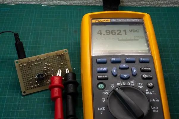 我們根據(jù)技術(shù)規(guī)格書中的應(yīng)用電路,將電子器件焊接到電路板上。由于輸出電壓由R1和R2的分壓電阻之比決定,因此我們將R1設(shè)置為12kΩ,將R2設(shè)置為3kΩ,其他部件使用與技術(shù)規(guī)格書中相同的元器件。