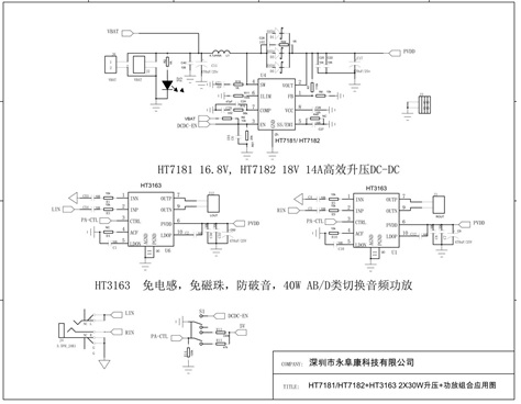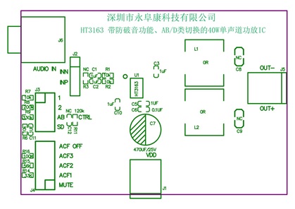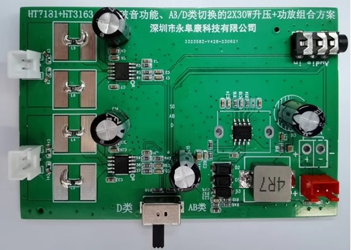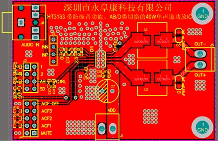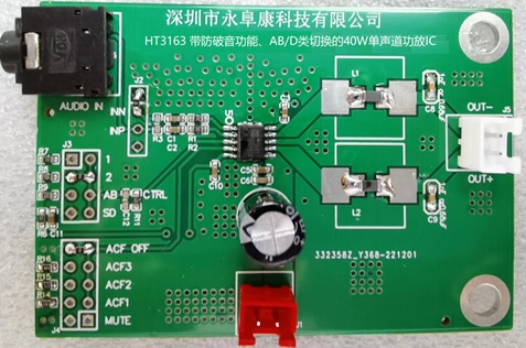 HT3163 寬電壓3V-18V供電、AB/D類切換40W單聲道音頻功放IC應用方案