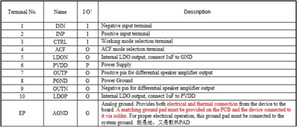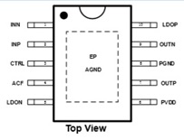 HT3163 40W (VDD=18V, RL=4Ω, THD+N=10%) ESOP-10 4V-18V 內置防破音功能、AB/D切換、40W單聲道功放IC