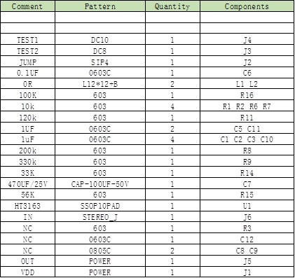 7. HT3163 DEMO板物料清單