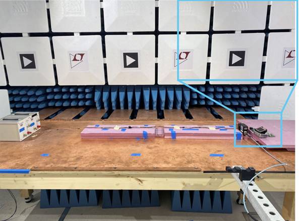 圖3.EMI測試室(50 mm)中的CISPR 25電流探頭傳導輻射(CE)設置