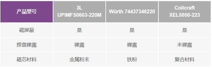 表1.測試所用電感的技術規格比較