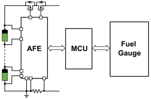 AFE 為 MCU 和電量計提供電池的電壓、溫度和電流讀數(shù)。由于 AFE 在物理上更接近電池,因此建議斷路器也由AFE控制;一旦發(fā)生故障,斷路器會將電池與系統(tǒng)的其余部分斷開。