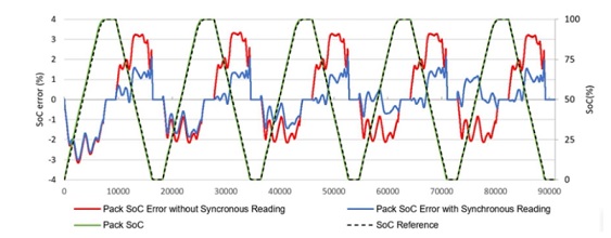 圖 2:同步讀取和非同步讀取的 SOC 誤差比較