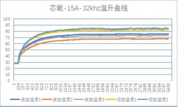 XNC20S12FT 新品SiC智能功率模塊在整機運行實驗中表現優秀,在較高工作載波頻率(32KHz),負載電流為80%的額定電流的工況下溫升表現良好,電流、電壓波形穩定無明顯尖刺干擾,能保證電機的穩定、高效運轉。