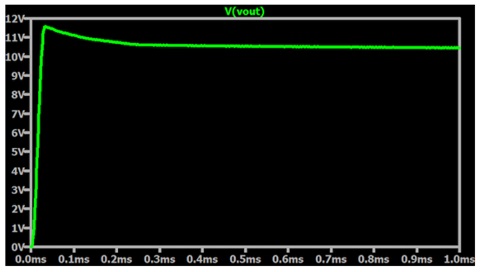 我們首先運行一個占空比為 50%、負載電阻為 1 kΩ 的仿真。圖 2 是輸出電壓隨時間變化的圖。請注意,輸出電壓需要一些時間才能達到其穩態值。