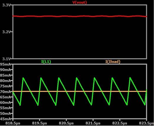 讓我們刷新一下。上次我們用這兩張圖來結束:在 LTspice 中實現的降壓轉換器的原理圖(圖 1);以及輸出電壓和電感電流的仿真結果(圖 2),其中包含恒定的 70 mA 負載電流作為參考。