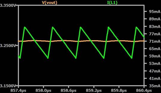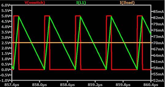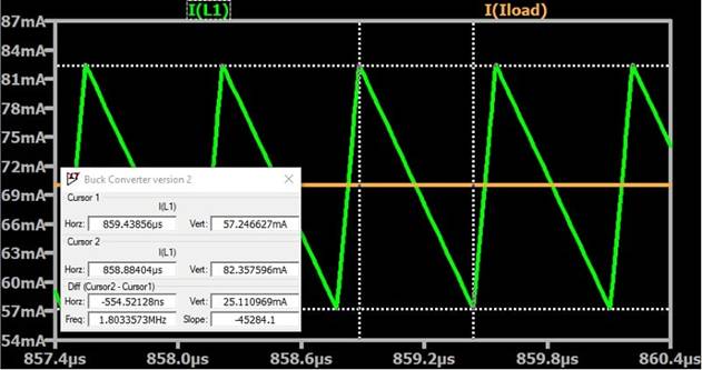 我們的設計目標是電感紋波電流為 30%,這意味著和電感電流應為 80.5 mA 和 59.5 mA: