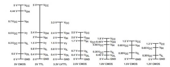 下圖展示了不同邏輯電平之間的電壓不兼容。TI電壓電平轉(zhuǎn)換指南 提供了有關(guān)這些及其他邏輯電平和工藝技術(shù)的優(yōu)勢和應(yīng)用的更多信息。