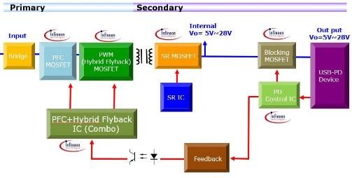 圖示3-大聯大品佳基于Infineon產品的140W電源適配器方案的方塊圖