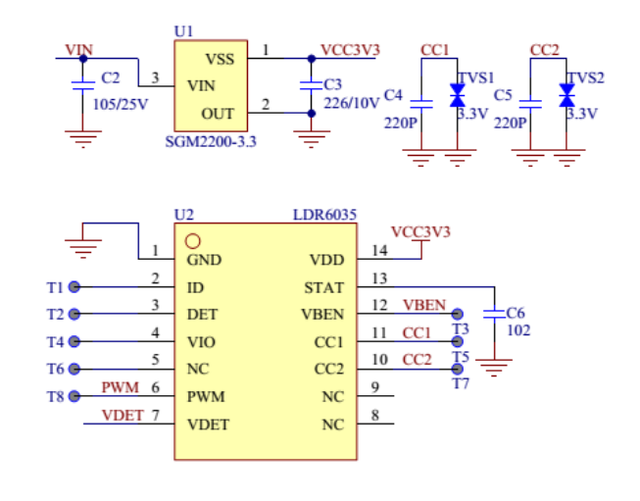 我們了解到一顆名為LDR6035的PD協(xié)議芯片, 就是專為單Type-C接口可充電可放電設(shè)計(jì)的,作為一顆DRP芯片,在不同的使用場景下,通過CC通訊識別插入的設(shè)備不同會自動切換DFP/UFP,這使得移動電源省去了多個(gè)接口的成本,產(chǎn)品設(shè)計(jì)也可以更簡約。
