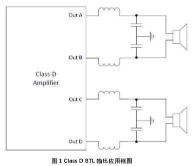 圖1為Class D典型BTL輸出應(yīng)用框圖